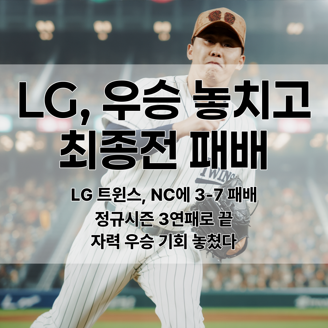 LG 트윈스가 2024년 정규시즌 마지막 경기에서 NC 다이노스에 3-7로 무릎을 꿇었어요. 이 패배로 시즌을 3연패로 마무리하며, 스스로 우승을 확정지을 매직넘버를 지우지 못했습니다.