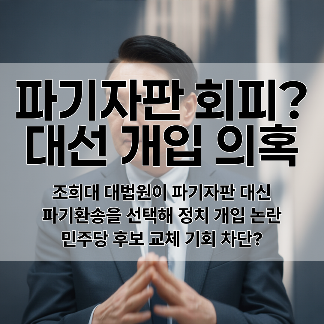 국회 청문회에서 조희대 대법원이 파기자판 대신 파기환송을 선택한 것에 대해 민주당 후보 교체 기회를 의도적으로 차단하려는 정치 개입 의혹이 제기되었다.
