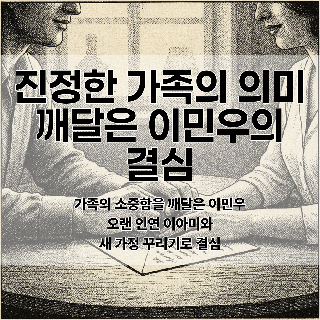 이민우는 힘든 시기에 가족과 시간을 보내며 가족의 의미를 깨달았다고 밝혔다. 오랫동안 인연이었던 이아미와 새로운 가족을 꾸리기로 결심했다고 전했다.