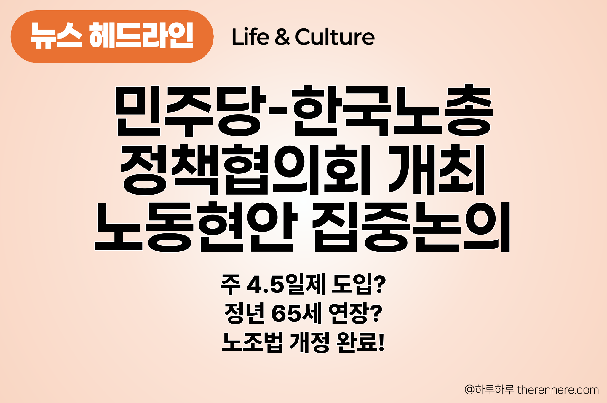 이번 협의회에서 가장 주목받은 의제는 역시 주 4.5일제 도입 논의였습니다. 정청래 민주당 대표를 비롯한 정치권이 본격적인 검토에 들어간 거죠.