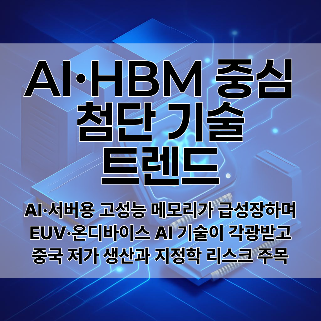 ⏺ AI·서버용 고성능 메모리가 급성장하며 EUV·온디바이스 AI 기술이 각광받고 중국 저가 생산과 지정학 리스크 주목